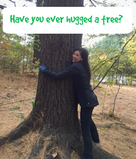 Well, during our walk, we happened to pass by my favorite tree and my friend and I both took turns giving it a great big hug. Hugging a tree, for me, makes me giggle, and feel grounded, and I remember that I am connected to the earth in a profound way.